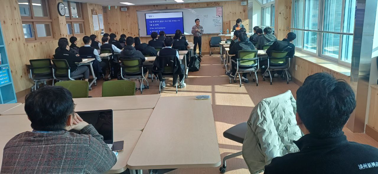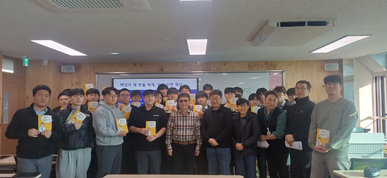 한글문화연대 이건범 대표님이 충청북도 청주시에 위치한 청추신흥고등학교에 방문하여 <공공언어 알아보기> 특강을 진행했습니다.